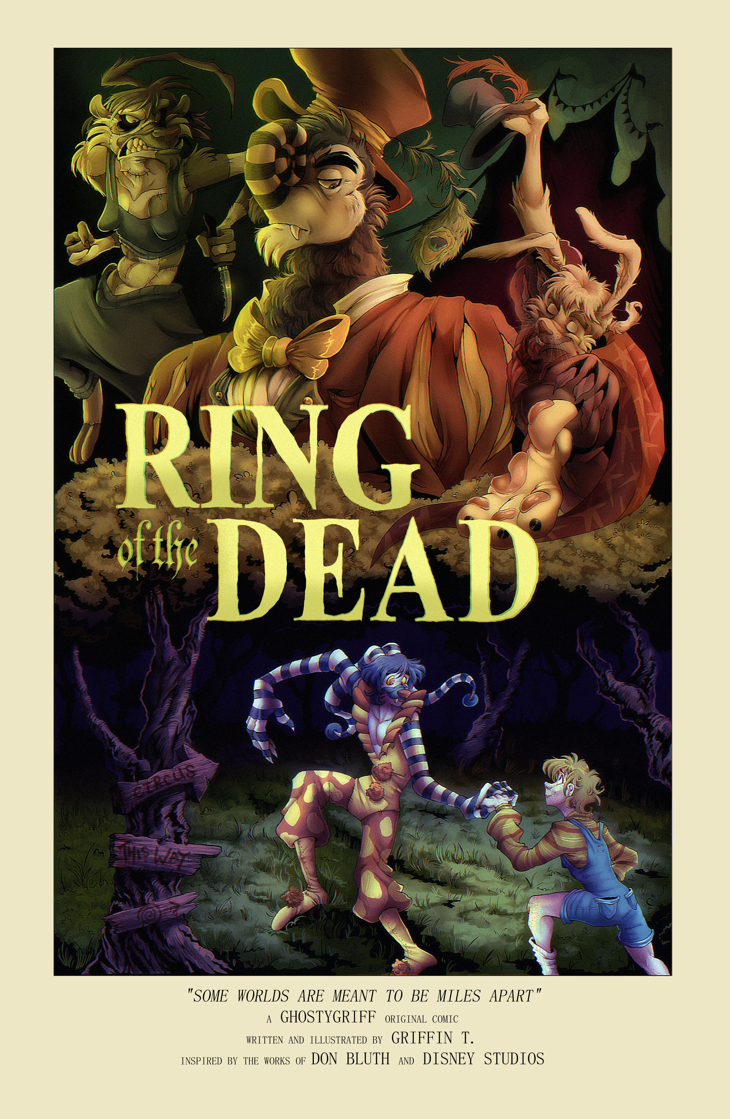 Come one, come all!Welcome to the official website for the "Ring of the Dead" comic!Here, I will post new pages, illustrations, and other exclusive information about the world of Clyde! This website is still a work in progress, but be sure to check back for regular changes and updated content! Thank you for your patience!- Griff